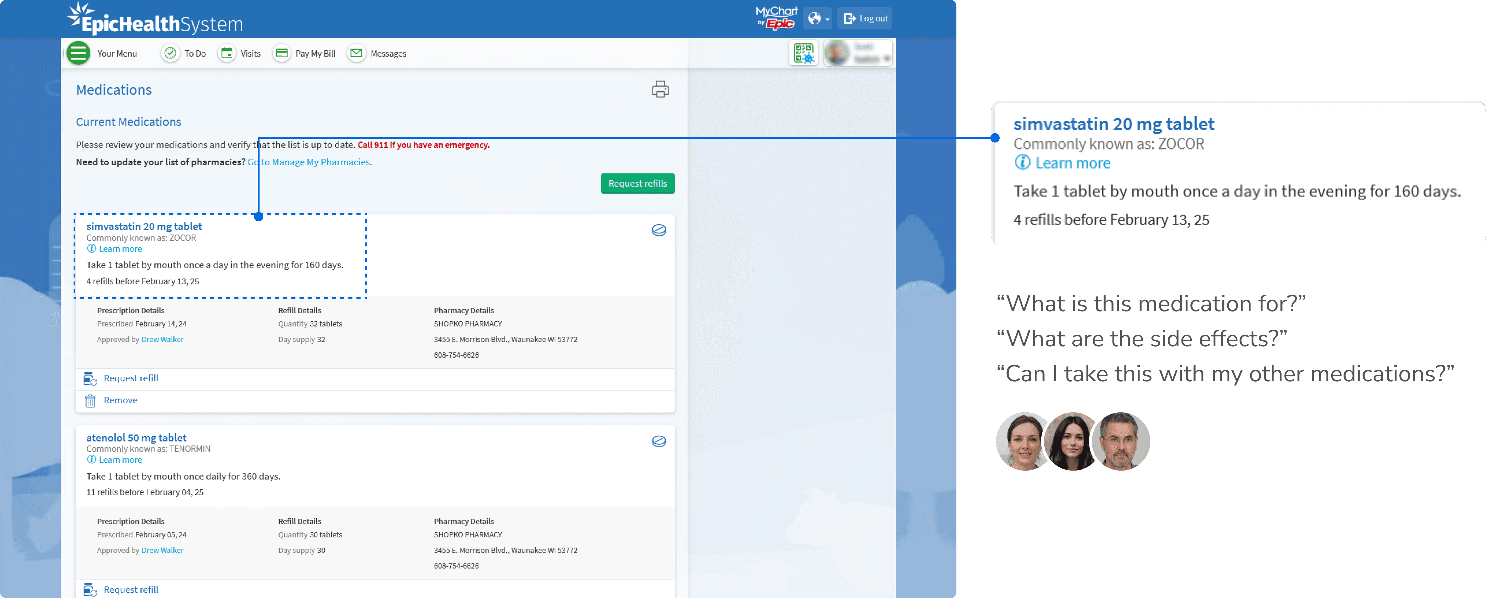 Our vision is to leverage AI to help patients understand their health data in MyChart by simplifying medical terms, charts, and reports. By turning complex information into actionable guidance, we aim to help them make informed decisions and take meaningful steps in their care.