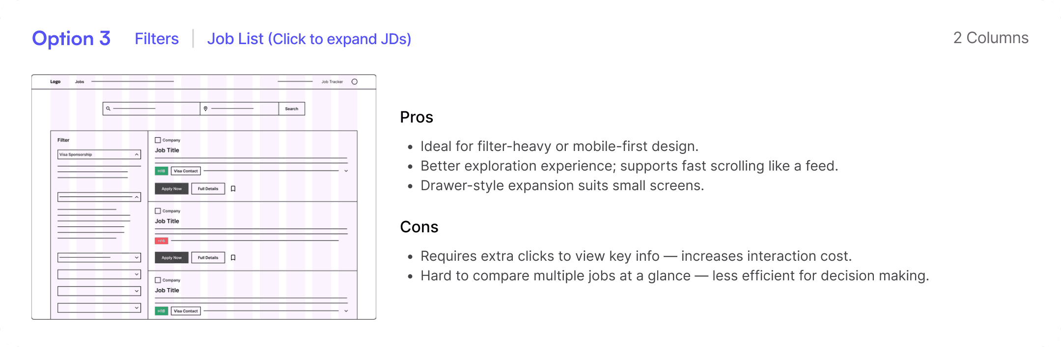 Hard to compare multiple jobs at a glance — less efficient for decision making.