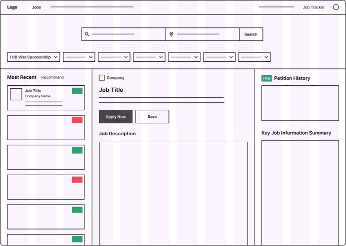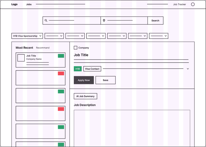 Designed a responsive job-hunting website, delivering an end-to-end user experience from concept to high-fidelity prototypes. Conducted user research and iterative design improvements, while A/B testing and performance analysis refined an AI-driven job description summary and surfaced key H-1B Information for international job seekers.