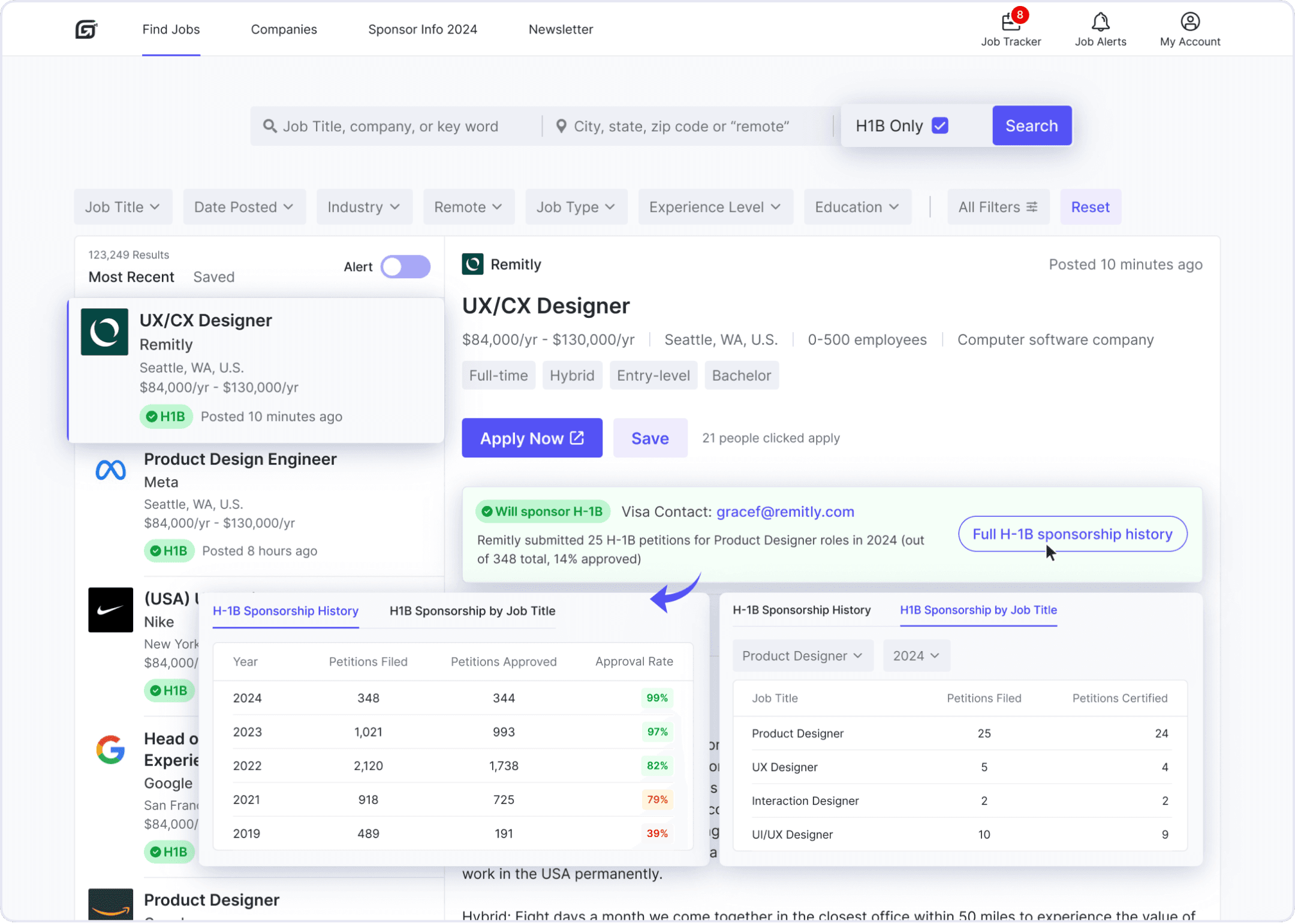 “I really like how it shows both the H-1B tag and petition history for job titles. Most job boards don’t go into that kind of detail. It helped me focus on the ones worth applying to.”
