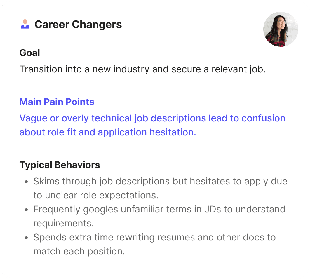 How might we supercharge career changers’ efficiency, helping them better assess job fit and confidently apply for relevant roles?