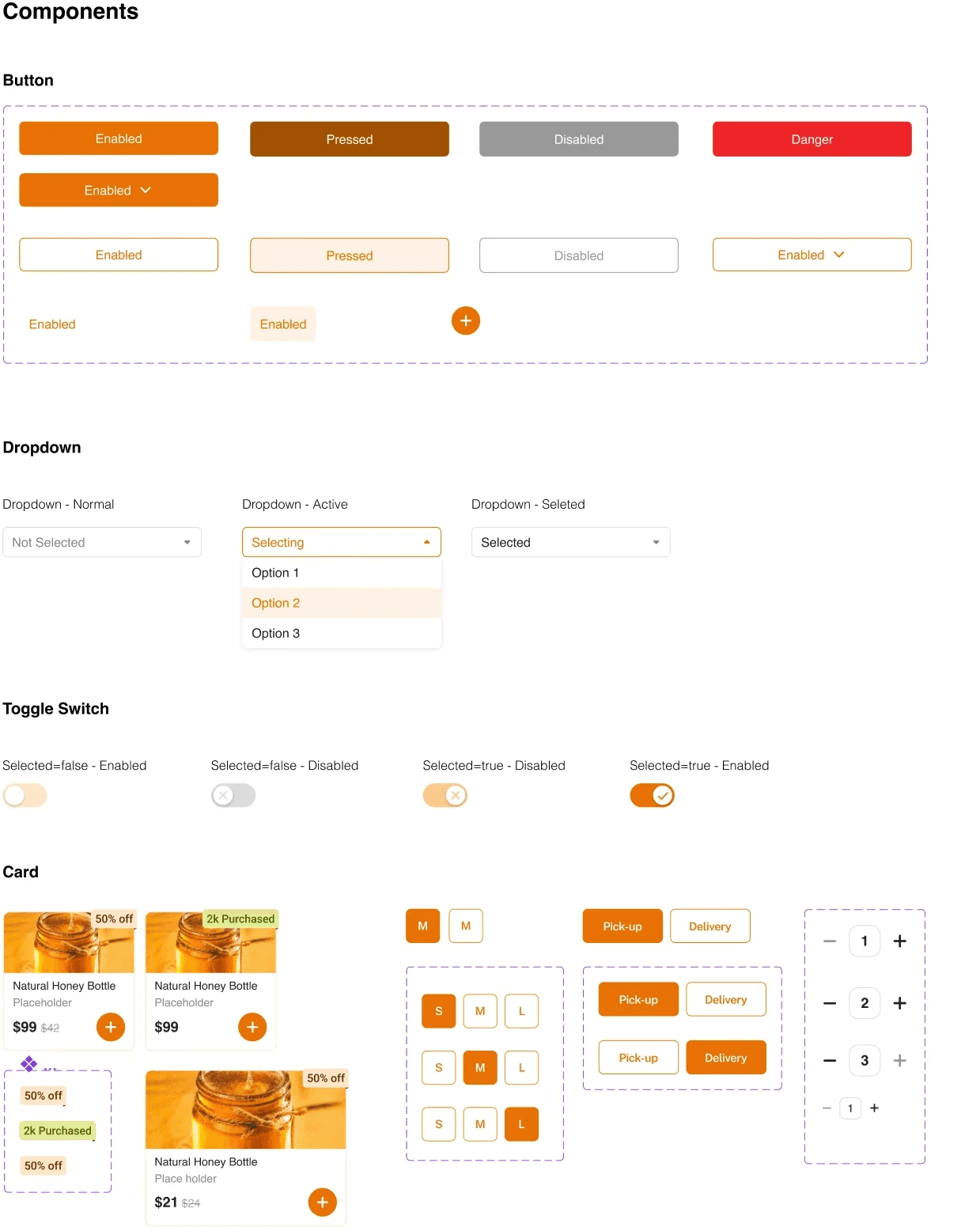 Delivery Options – Combines “Delivery” and “Pick-up” under a shared order fulfillment label.