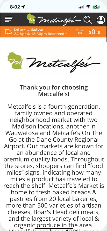Metcalfe's Market, a family-owned, green-powered neighborhood market, sought to revamp its mobile app to align with modern mobile design principles and increase conversion rates, identified as key metrics for success.